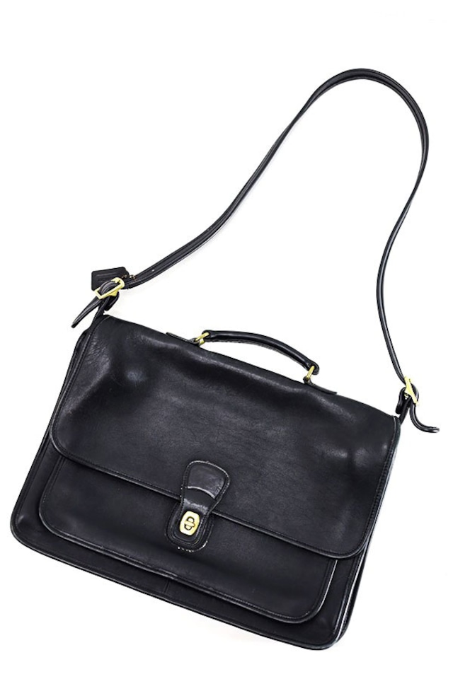 Used 90s USA OLD COACH Black Grab Leather Briefcase Sholder Bag 古着