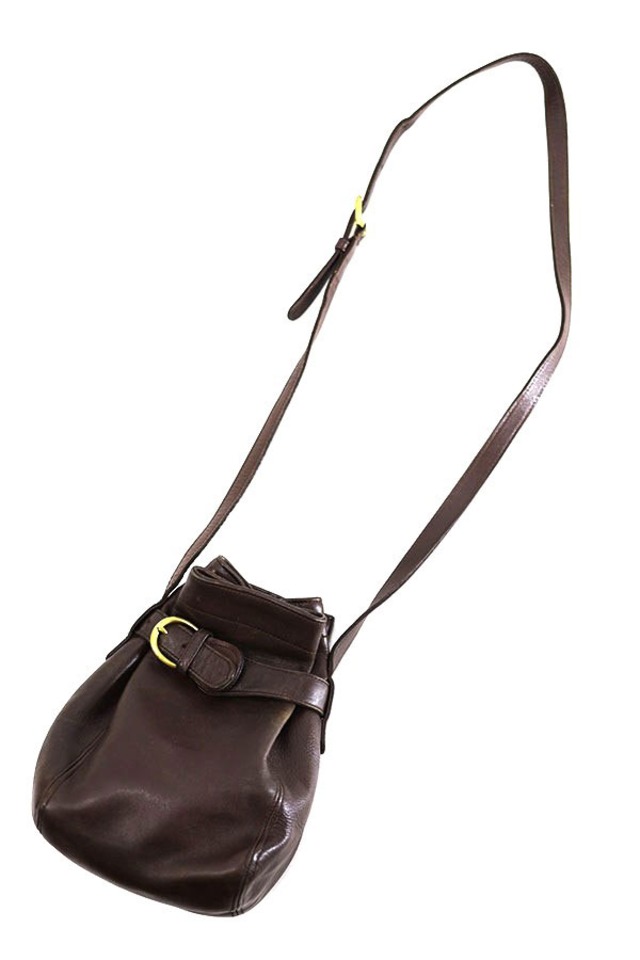 Used 90s USA COACH Dark Brown Grab Leather Draw String Type Sholder Bag 古着