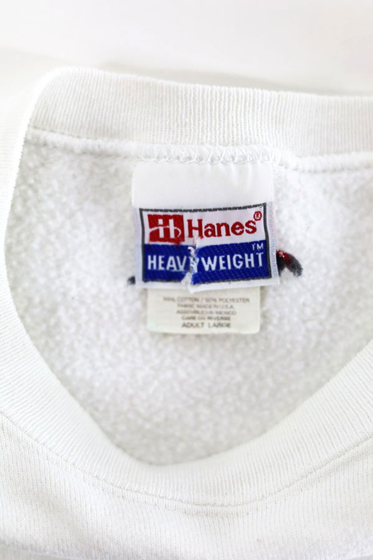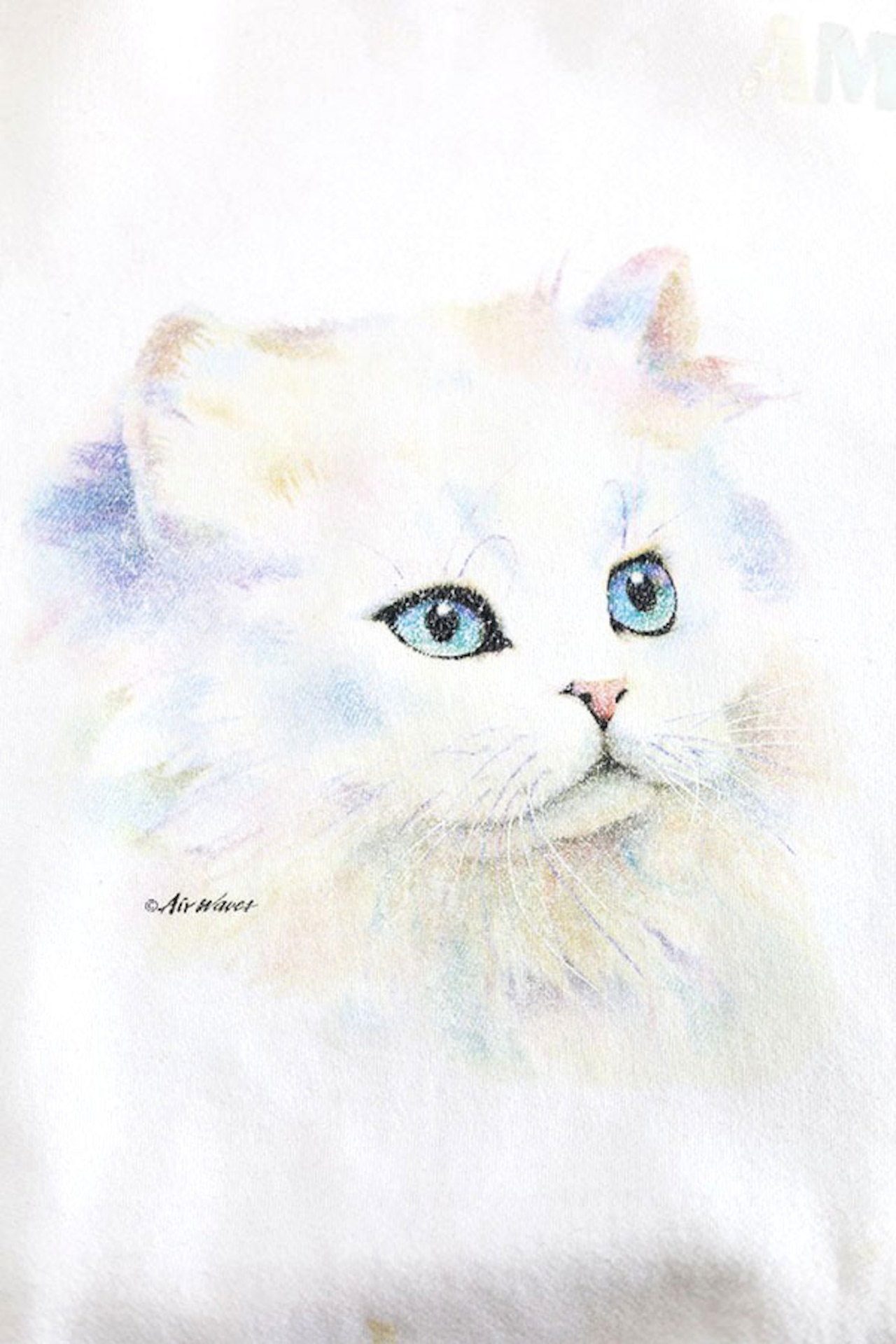 Used 90s HANES White Cat Animal Art graphic Sweat Size L 古着