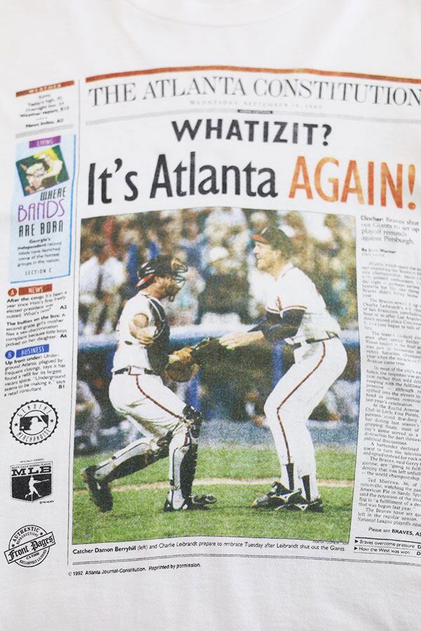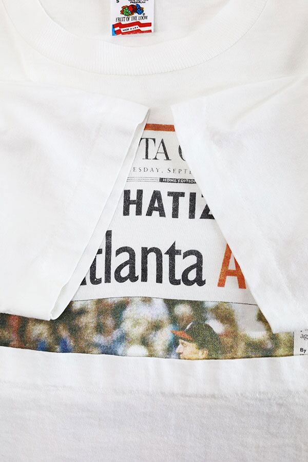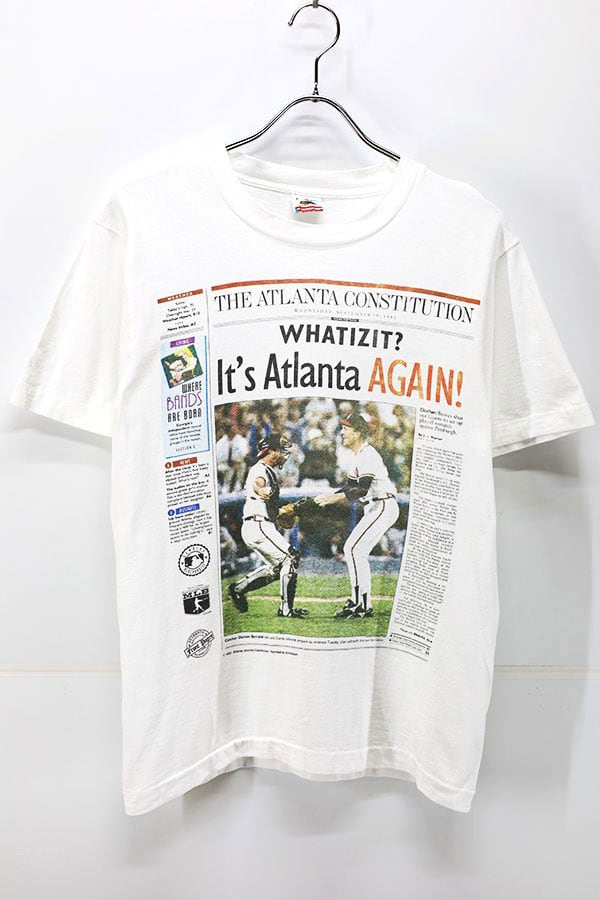 Used Womens 90s USA MLB Atlanta Braves News Paper Photo Graphic T-Shirt Size S 古着 | ear vintage&culture store