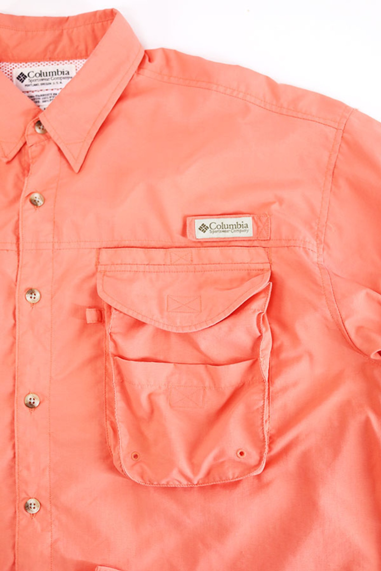 Used 90s Columbia PFG Salmon Pink Fishing Gimmick Shirt Size M 古着