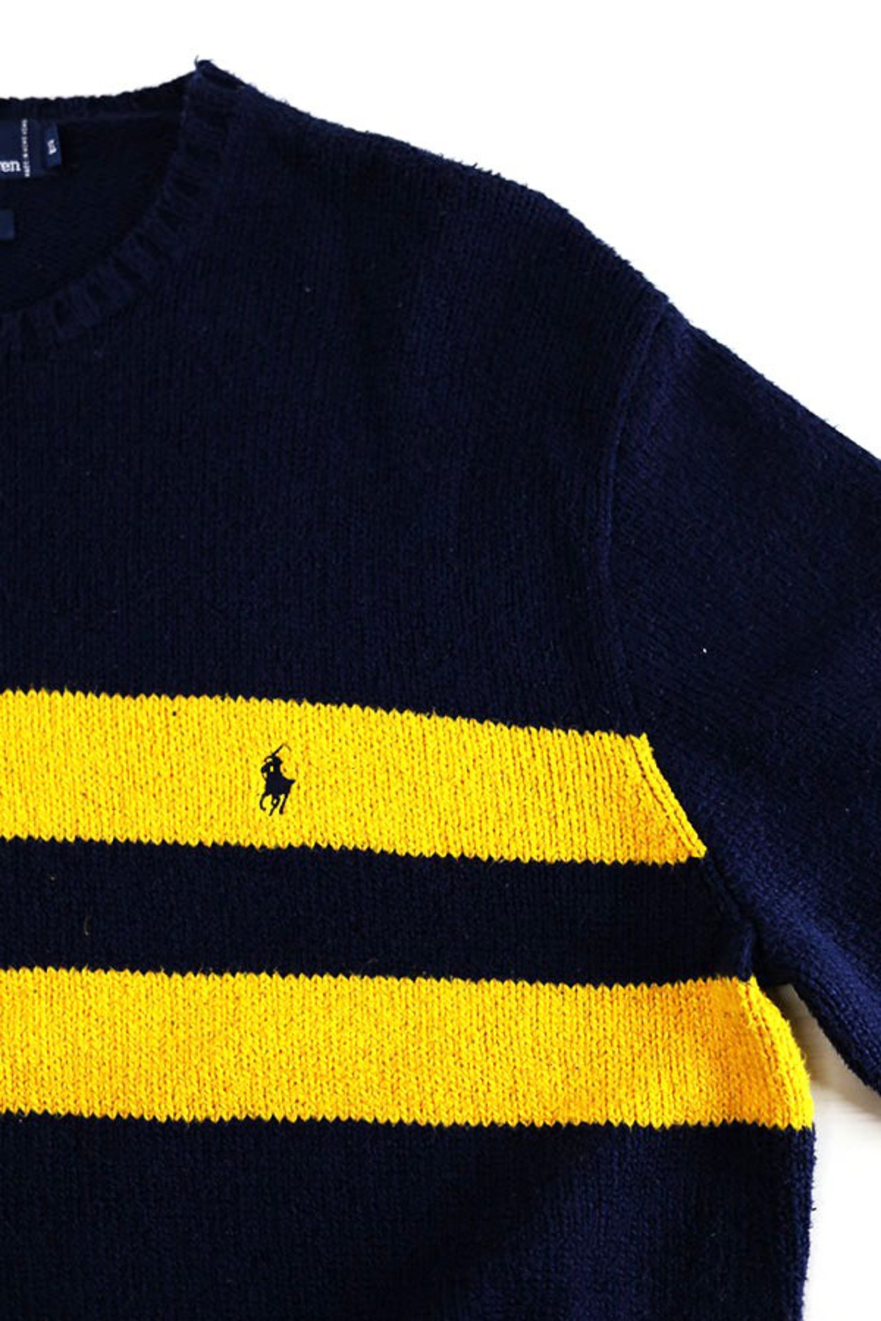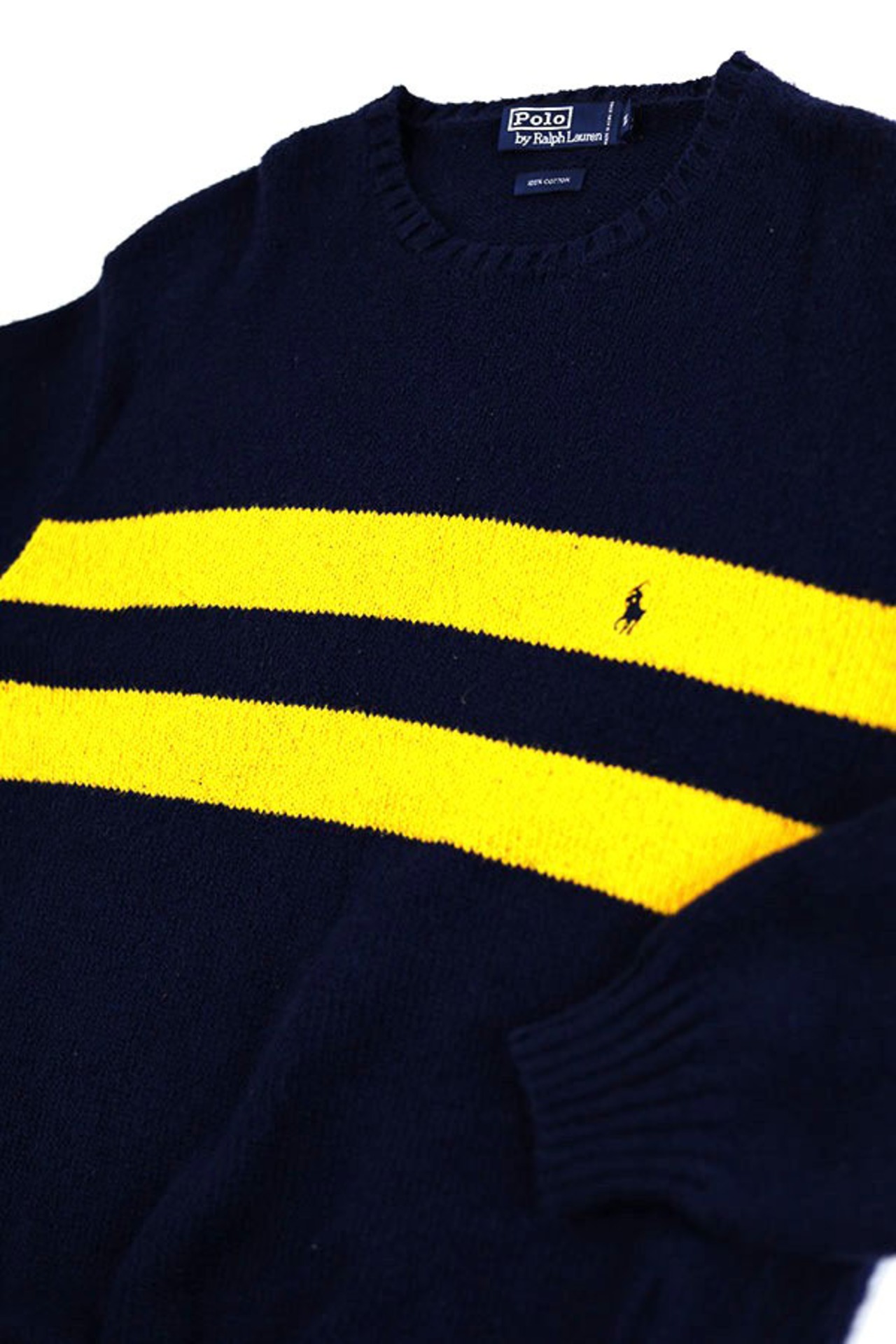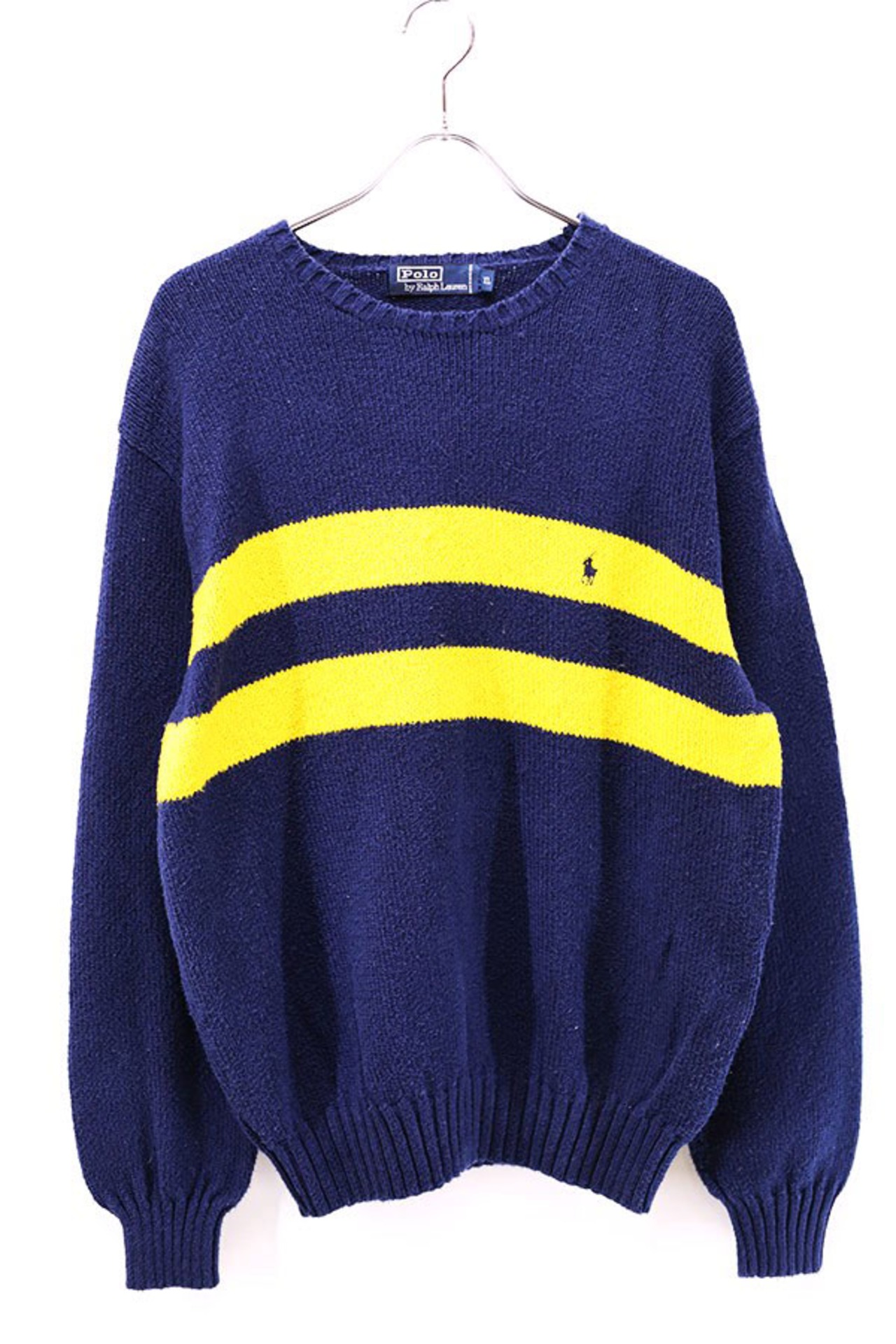 Used 90s POLO by Ralph Lauren Navy×Yellow 2Tone Cotton Knit Size XL 古着