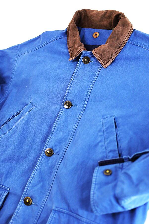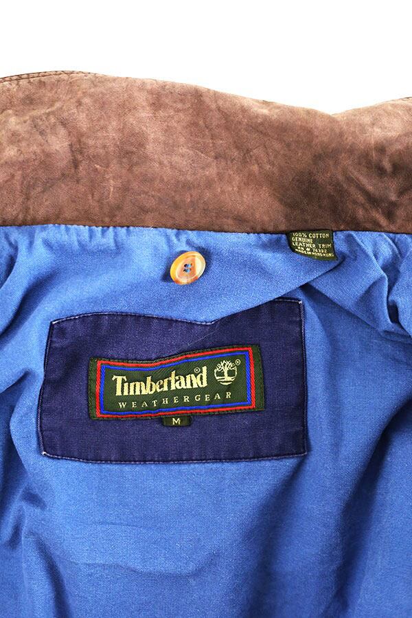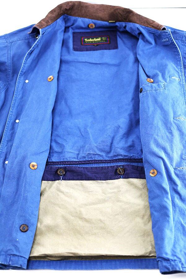 Used 90s Timberland Blue Cotton×Leather Field Hunting Jacket Size M 古着