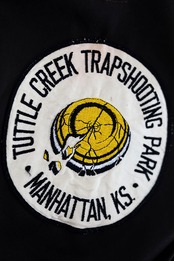 バックには個性的なTRAP SHOOTING PARAKのクレーが描かれたワッペン