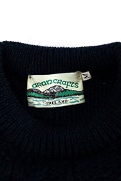 Used 90s IRELAND aran crafts Dark Green Wool Fisherman Aran Knit Size M 古着