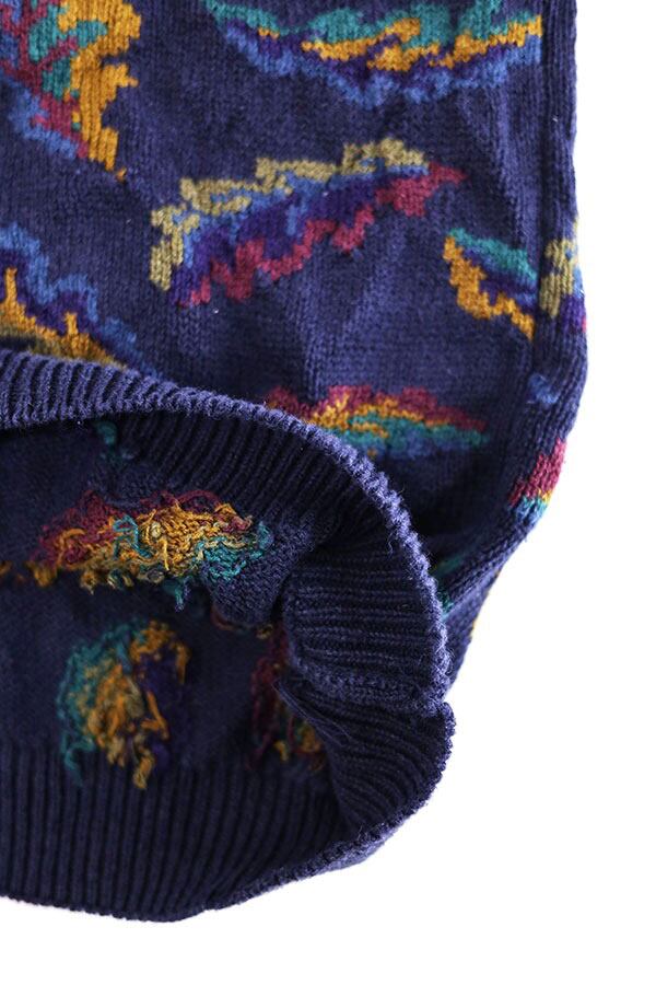 Used 90s northern isles Navy Leaf All Over Graphic Cotton Mix Knit Size M 古着 | ear vintage&culture store