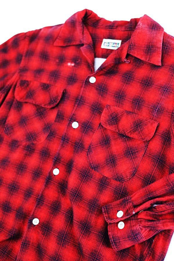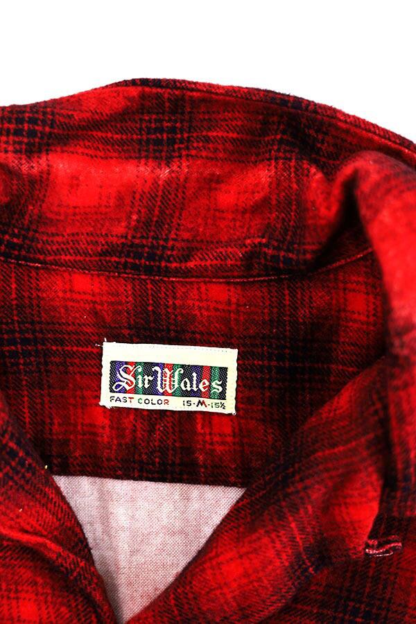 Used 50s Sir Wales Red×Black Omble Shadow Check Print Nel Shirt Size M 古着 | ear vintage&culture store