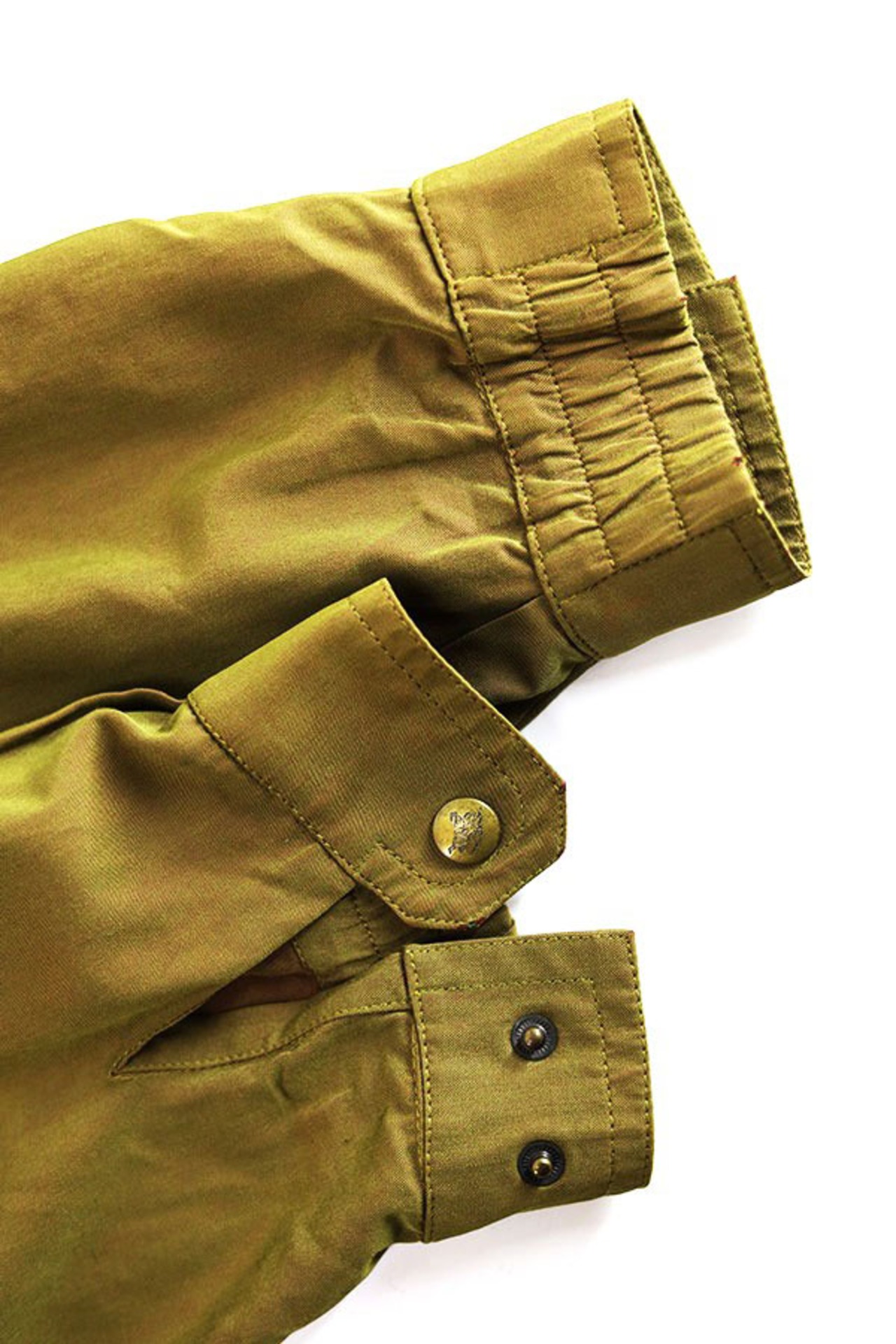 スタイリッシュな刻印入りのメタルスナップボタン