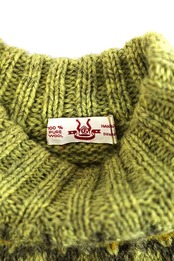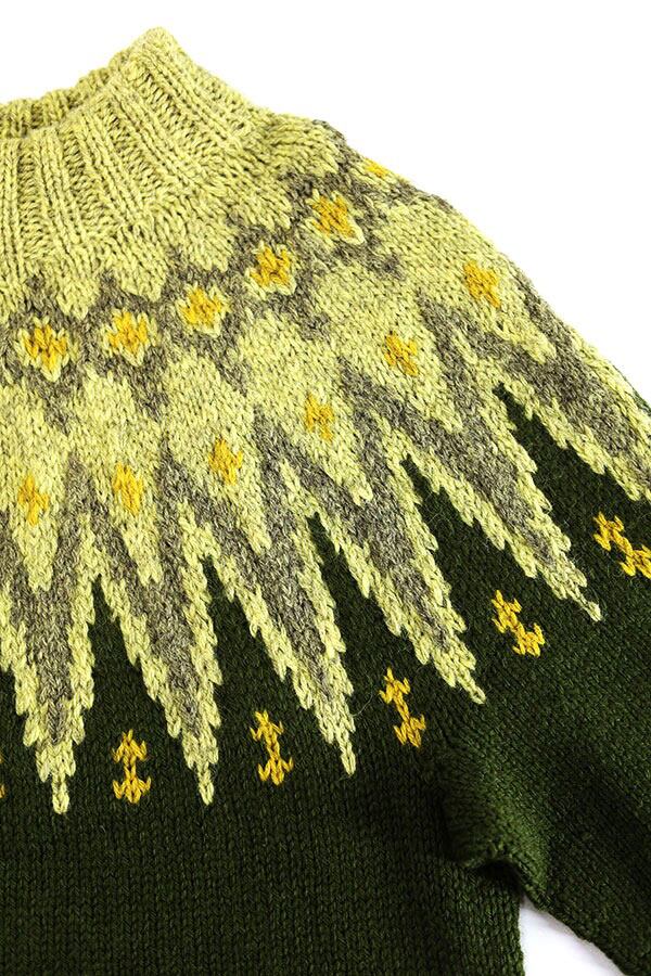 モックネックでヨーク全体にかけて柄が表現されて編まれた