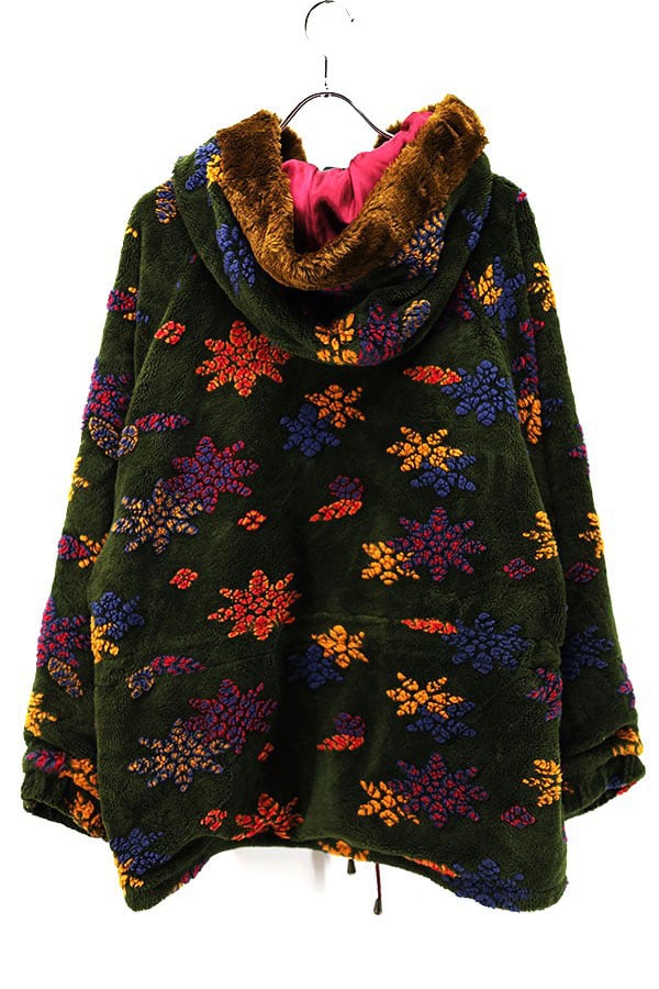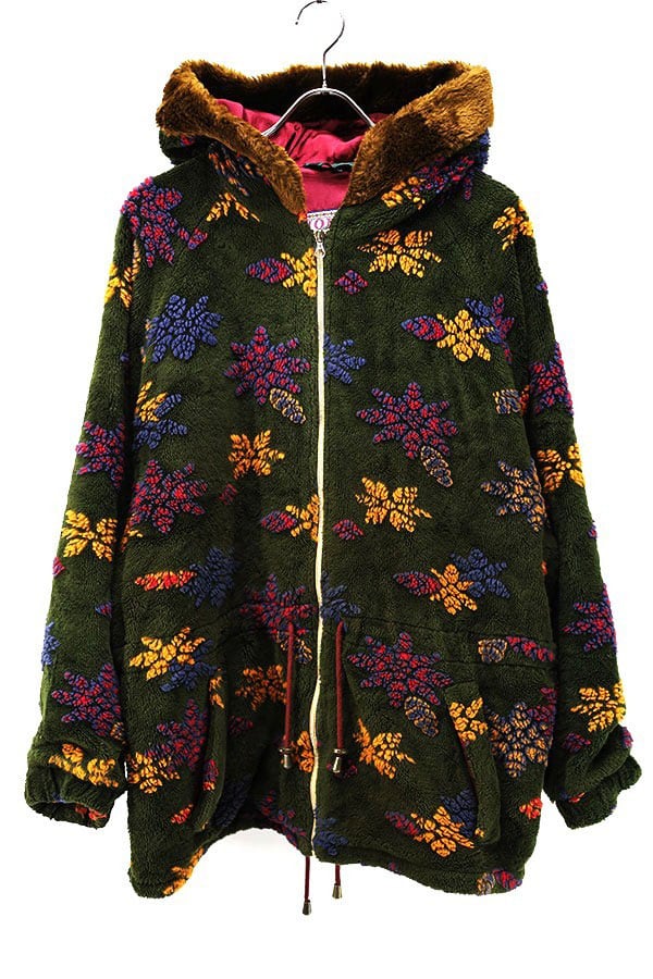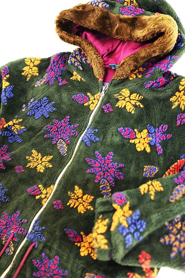 Used 80s-90s ITALY Moss Green Color Flower Pile Fleece Parka Jacket Size L 相当 古着 | ear vintage&culture store