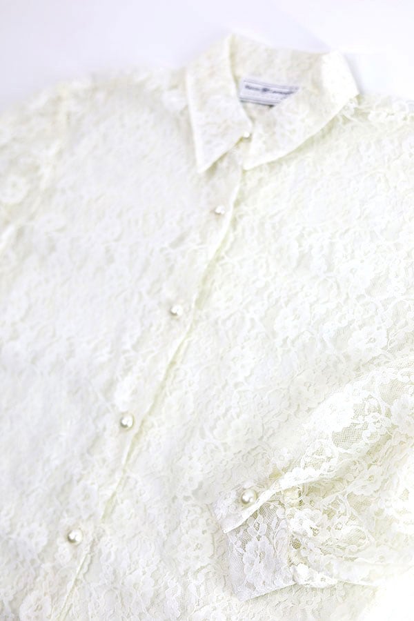 Used Womens 80s-90s USA Maggie Lawrence All Lace Round Shirt Size L 古着