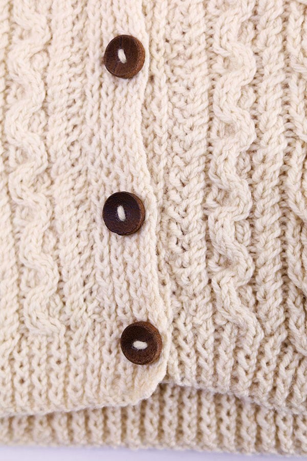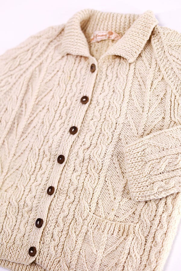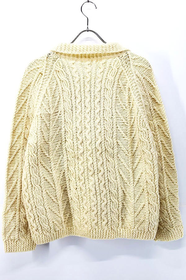 Used Womens 60s-70s IRELAND Carakeel Ivory Wool Fisher man Knit Cardigan Size L 古着