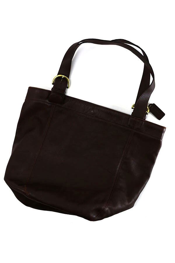 Used 80s USA COACH Dark Brown Grab Leather Big Size Sholder Tote Bag 古着