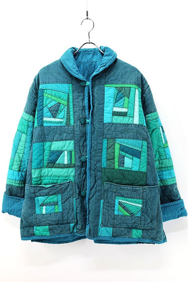 Used 80s-90s Unknown Turquoise Quilt Patch Work Padded Jacket Size L-XL 相当 古着 | ear vintage&culture store
