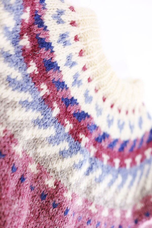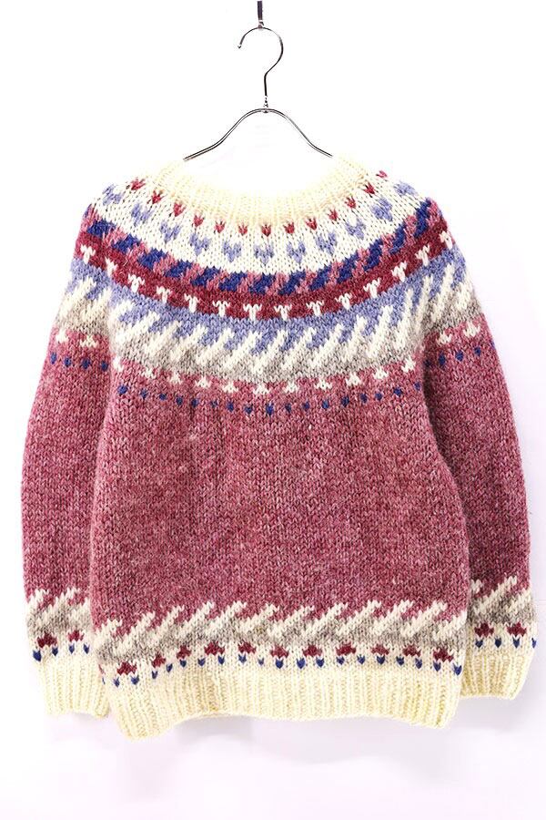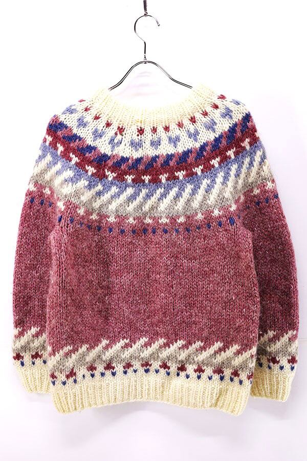 Used Womens 70s ICELAND Hilda Ltd Pale Pink Nordic Wool Knit Size M 古着
