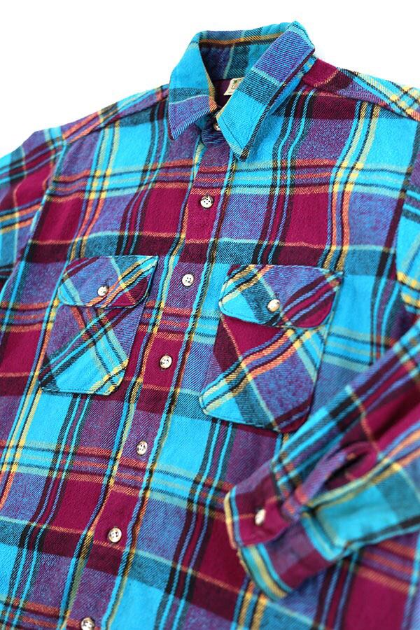 Used 90s USA FIVE BROTHER Blue×Purple Check Heavy Nel Shirt Size L 古着