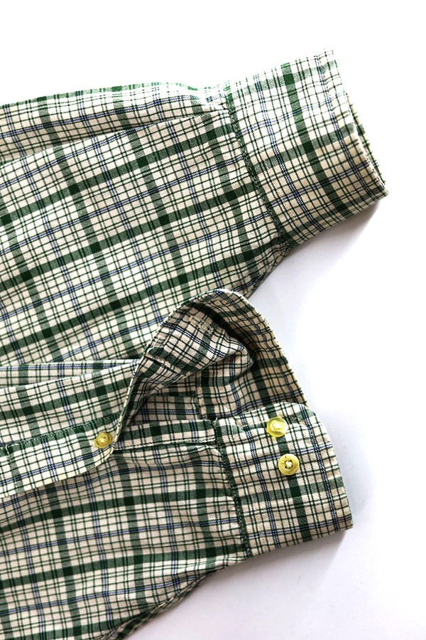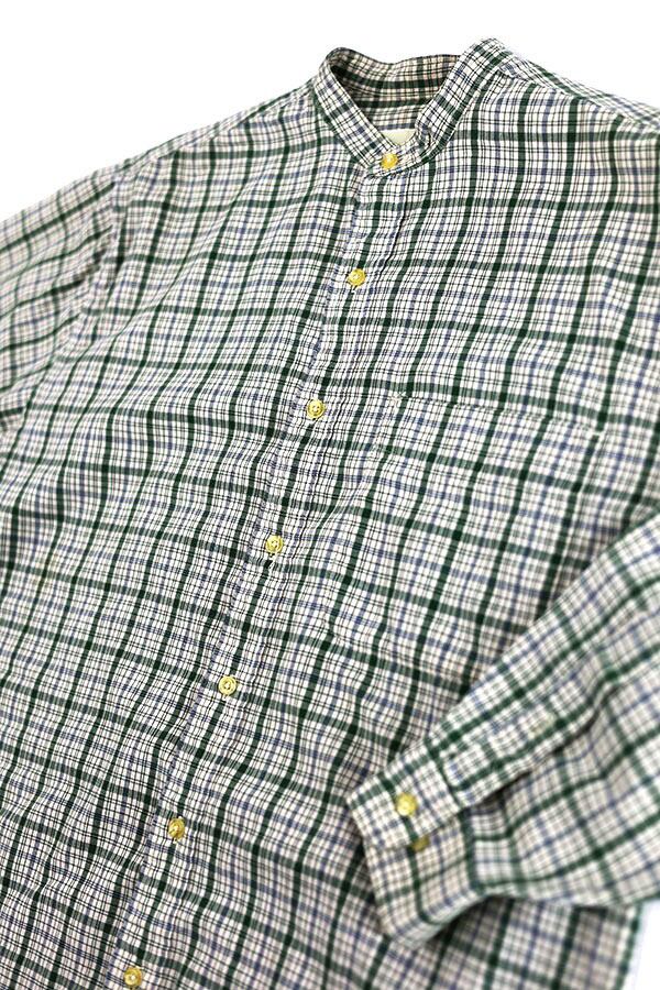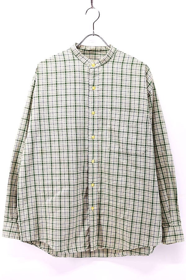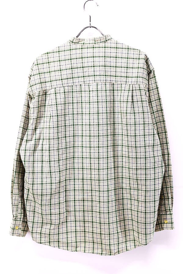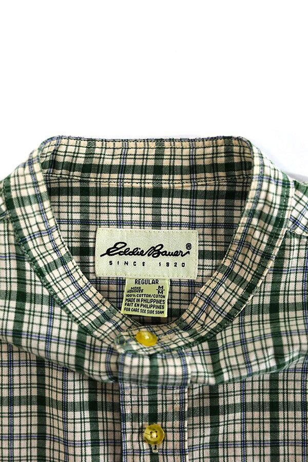 Used 90s Eddie Bauer Green Nerd Check Stand Collar Shirt Size M 古着