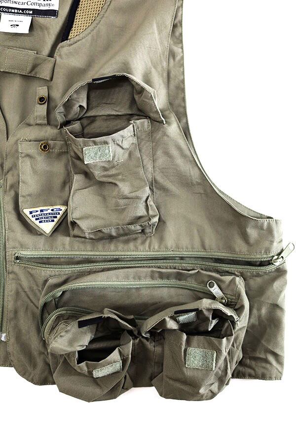 Used 00s Columbia PFG Khaki Fishing Gimmick Vest Size XL 古着