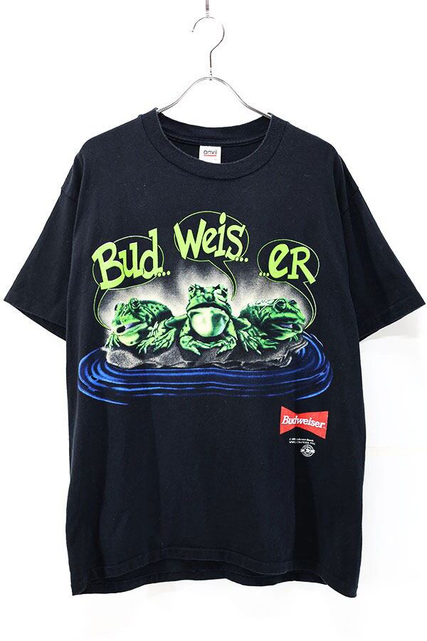Used 90s USA anvil Budweiser Black 3Frog Both Graphic T-Shirt Size XL 古着