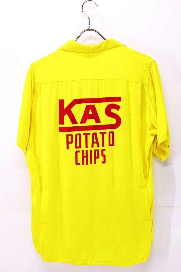 Used 60s King Louie Yellow Rayon KAS POTATO CHIPS Flocky Print Bowling Shirt Size M 古着