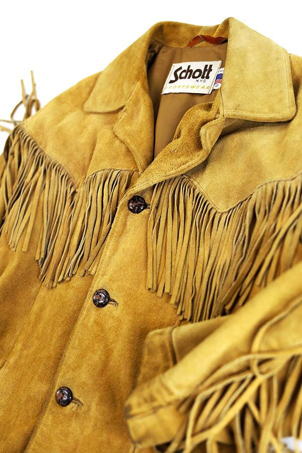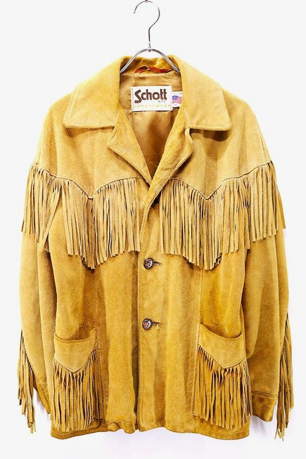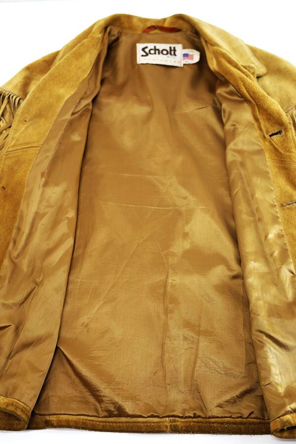 Used 70s USA SCHOTT Camel Brown Suede Leather Fringe Jacket Size 40 古着