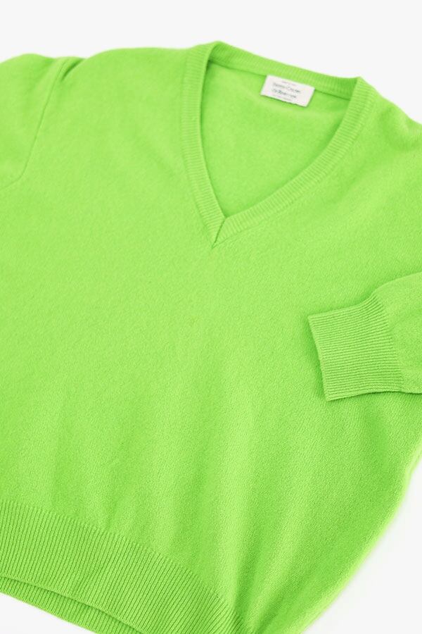 Used 90s ITALY BENETTON Lime green V-neck lambs wool knit sweater Size M 相当 古着 | ear vintage&culture store