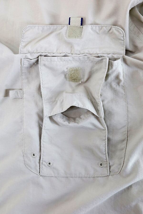ソフトシェルの様な柔らかなナイロン素材とヨーク裏のメッシュ加工など、
