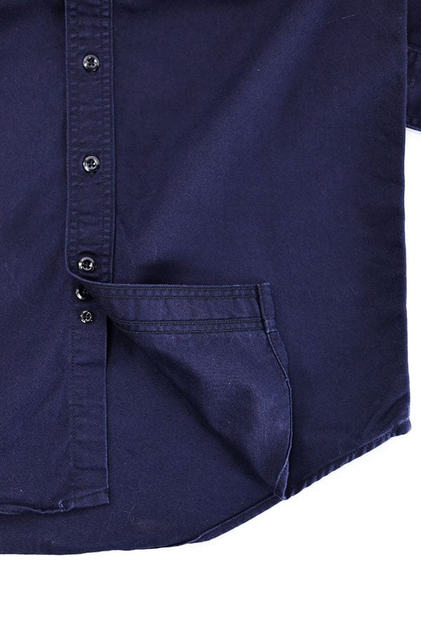 端々には丈夫な3ステッチのワークウェアらしさがありますが、襟先はまさかのボタンダウン。