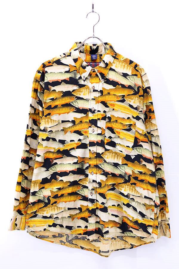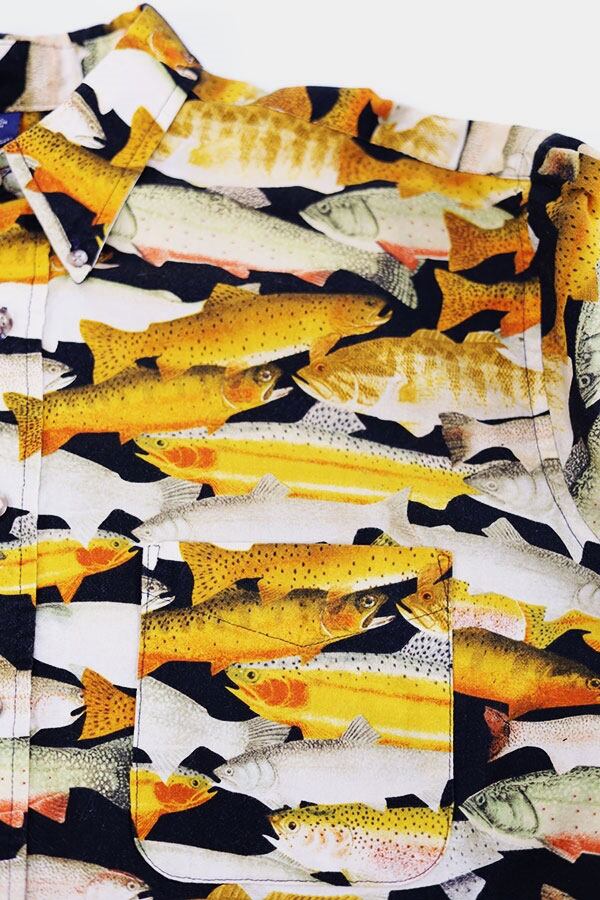 Used 90s USA Fish Fish Fish All Over Graphic BD Shirt Size XL 古着