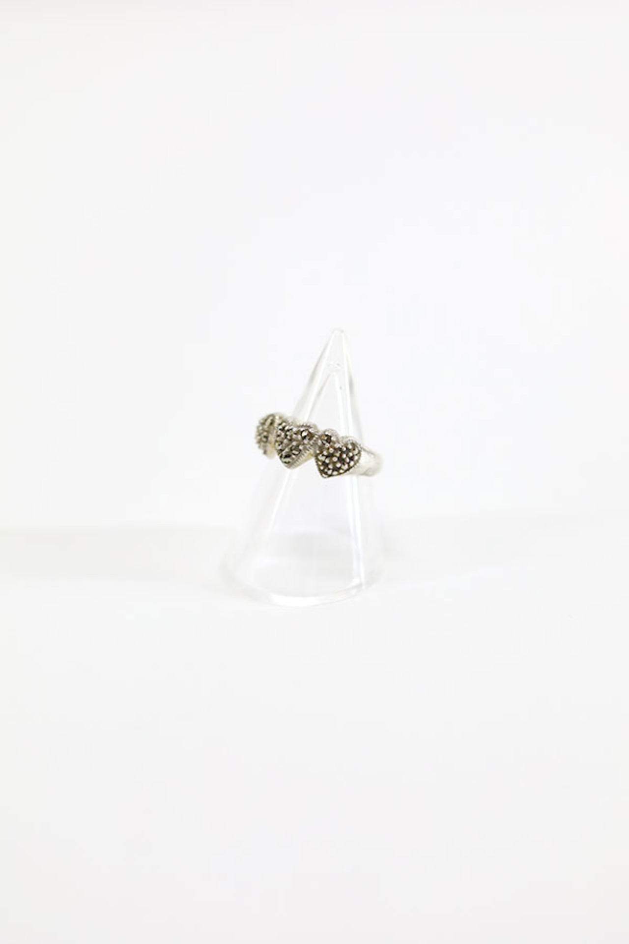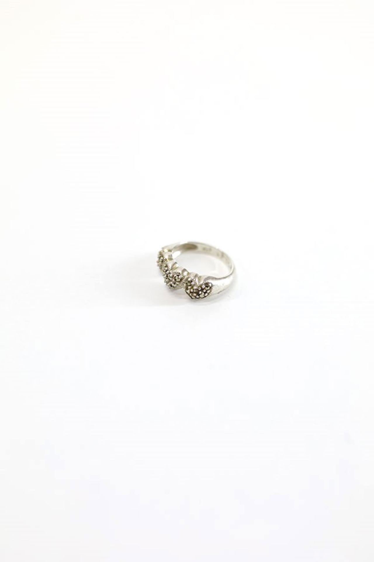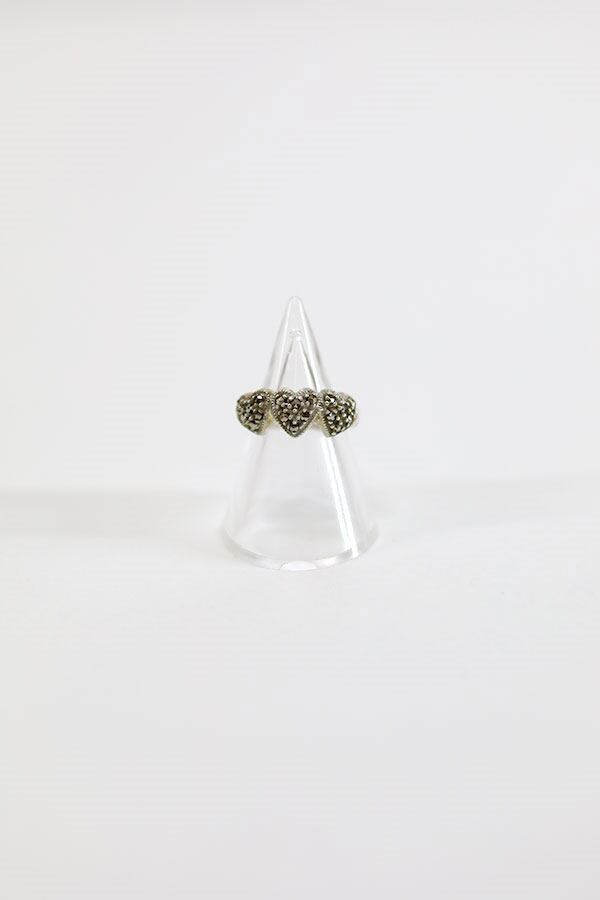 Used Unknown Silver925 3 Heart Design Marcasite Silver Ring Size 9号 古着
