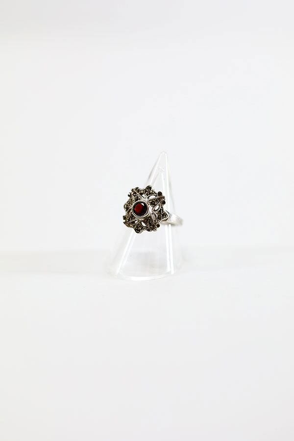 Used Unknown Silver925 Garnet and Marcasite Silver Ring Size 13号 古着