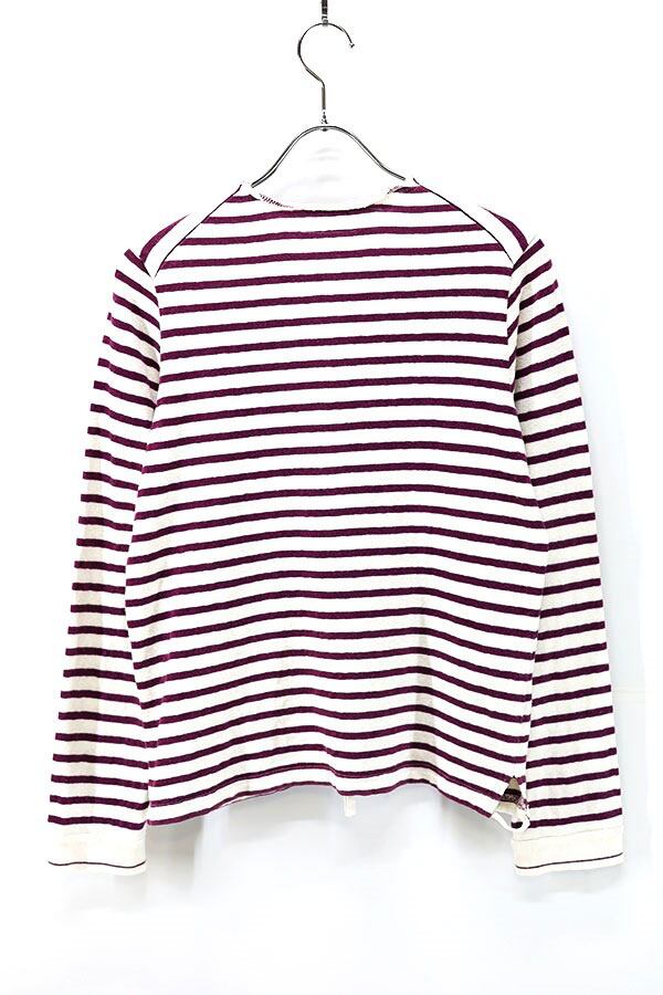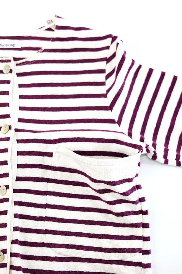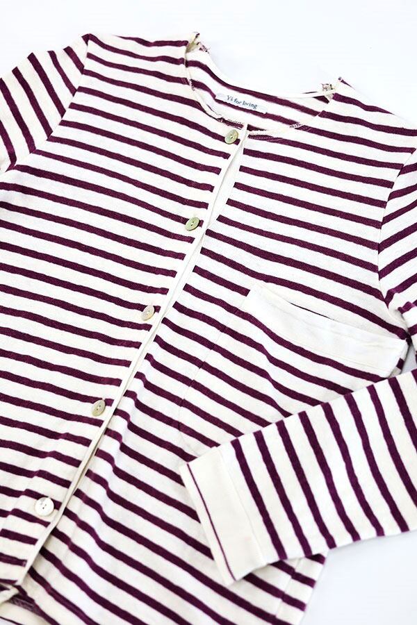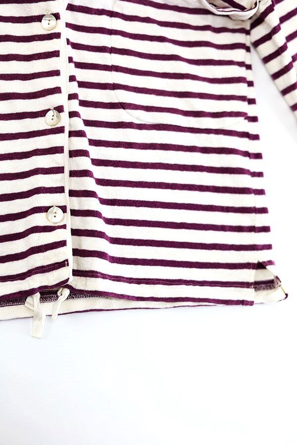 ボーダー柄のカットソーの様なコットン素材に、シェルボタン、デザインポケット