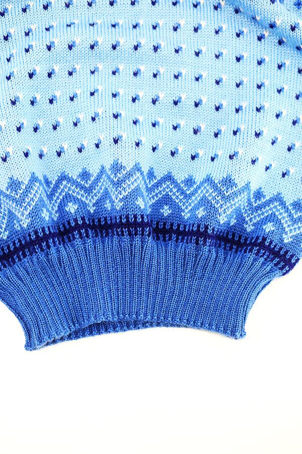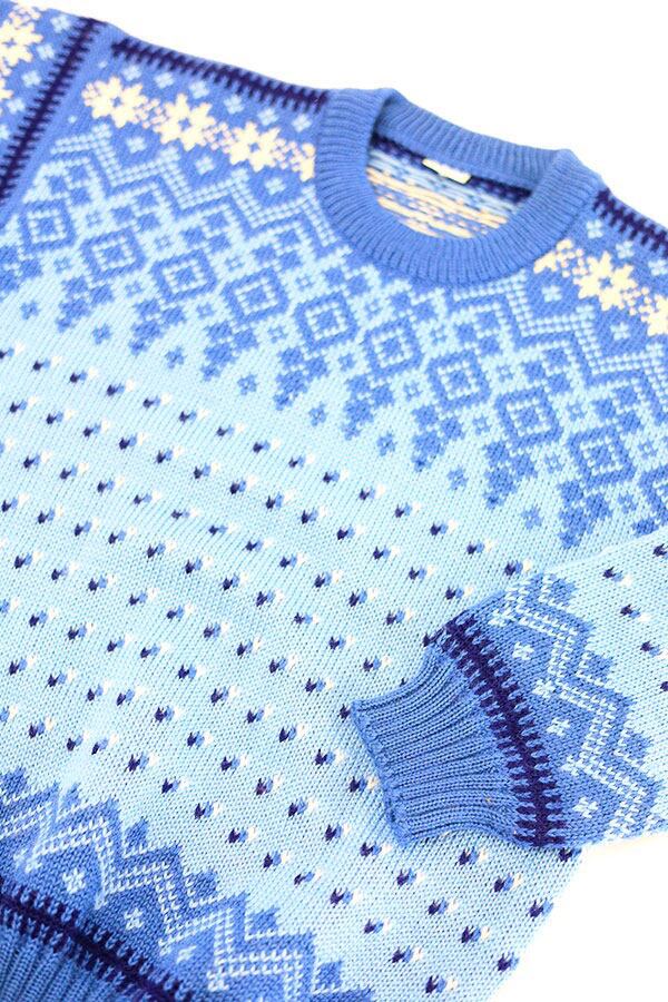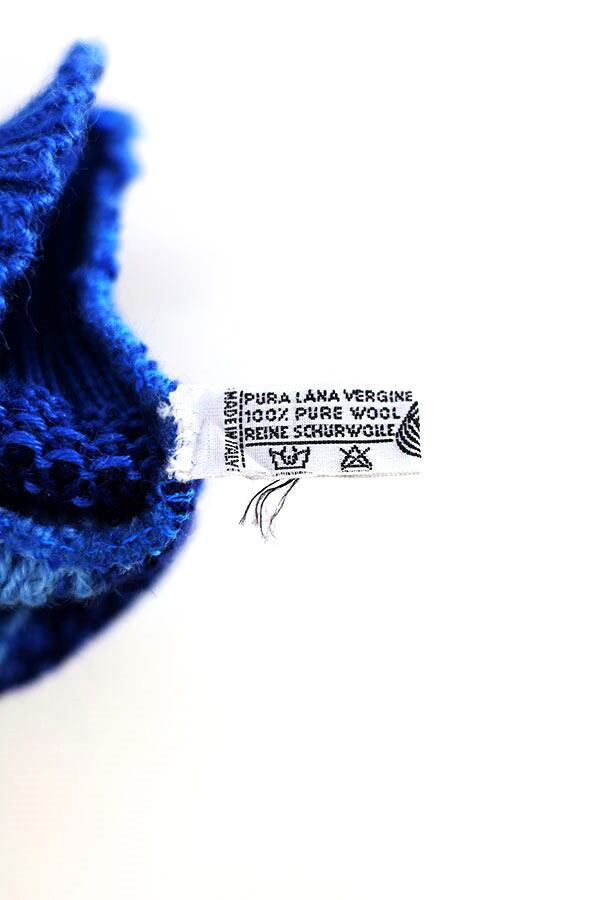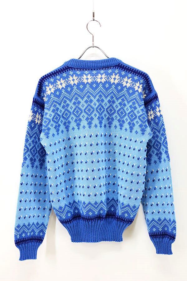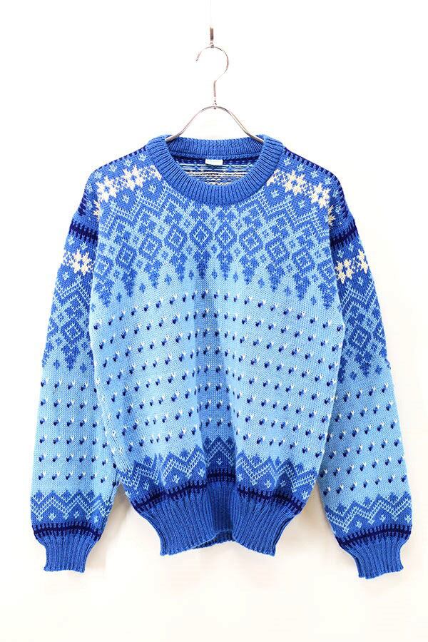 Used 80s ITALY Nordic Blue Wool Knit Size M 相当 古着
