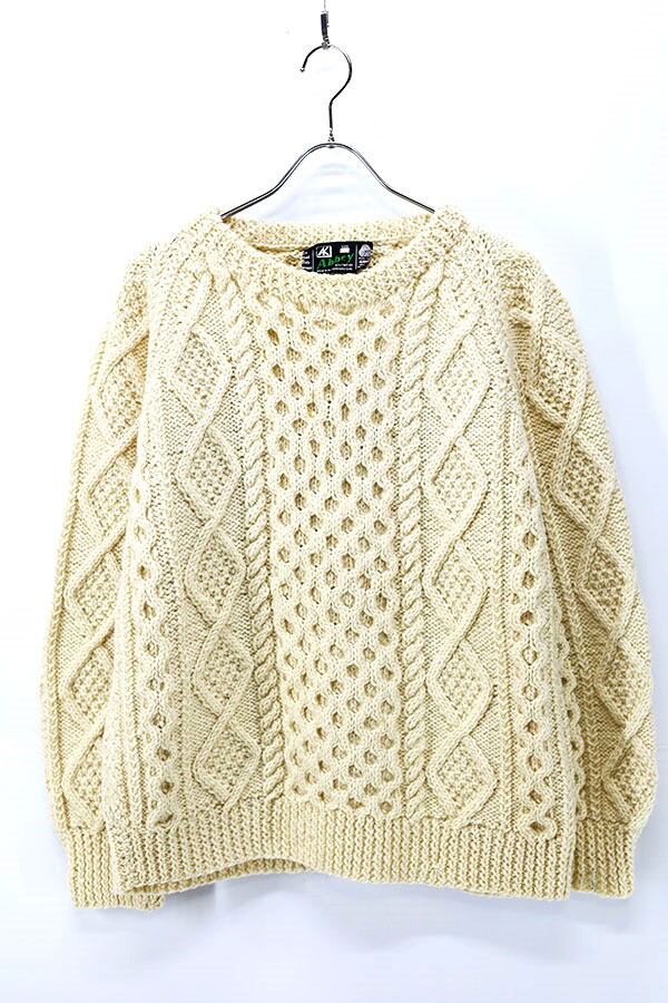 Used 80-90s Ireland cable Wool Fisher man Knit Size L 相当 古着