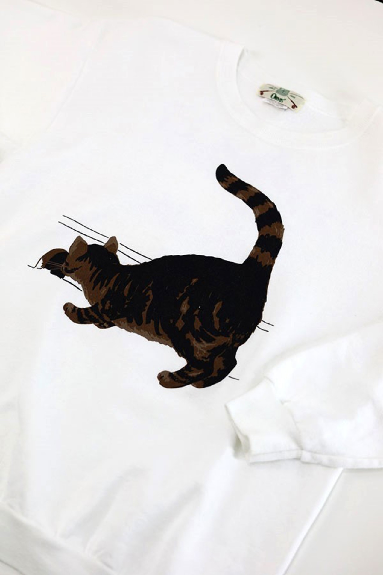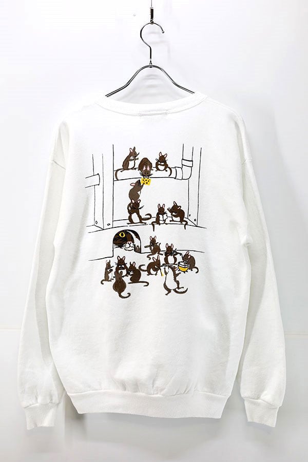 Used 90s ORVIS Cat n Mouse Animal Art Both Graphic Sweat Size L 古着