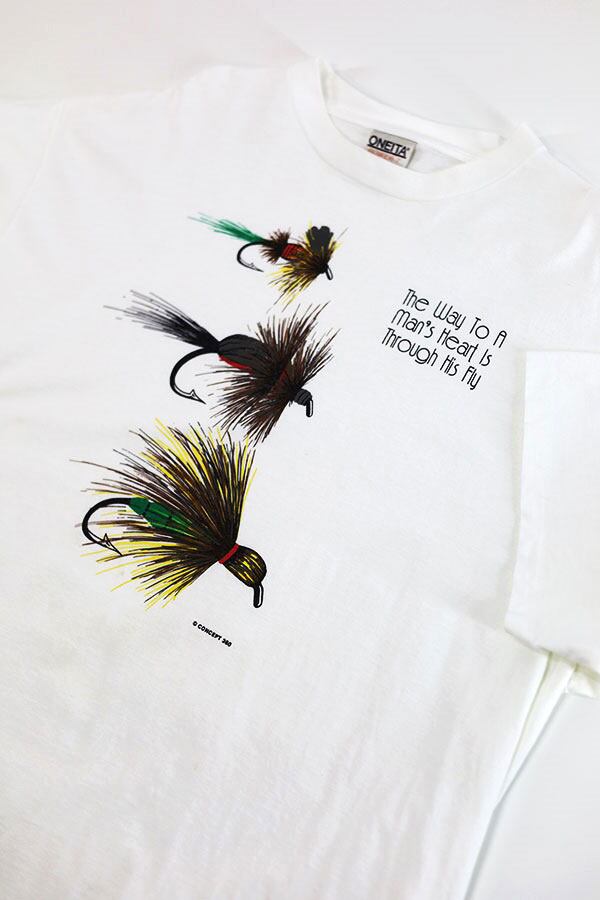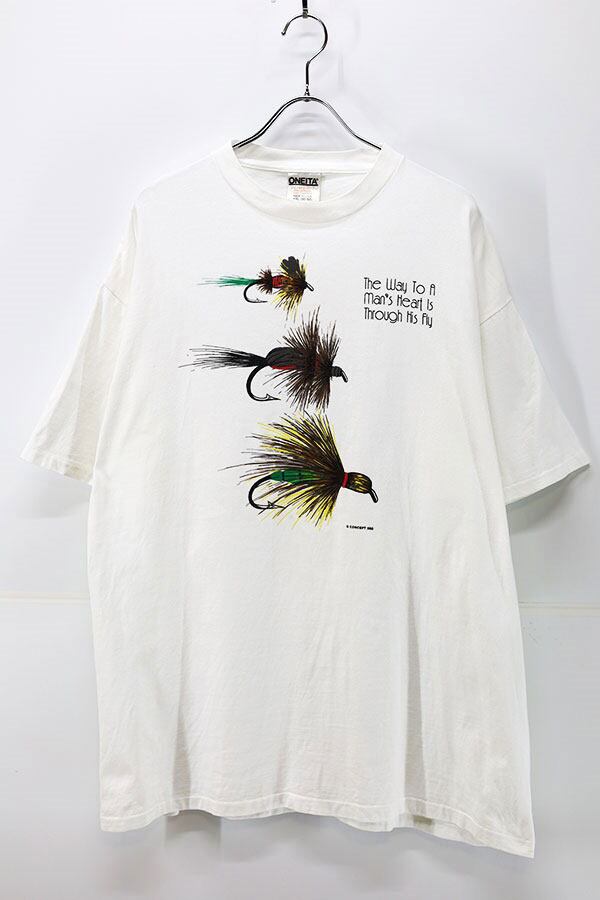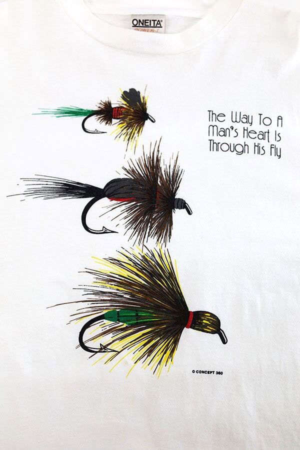 Used 90s USA Mans Heart is Through His Fly Pop Art Graphic T-Shirt Size 2XL 古着