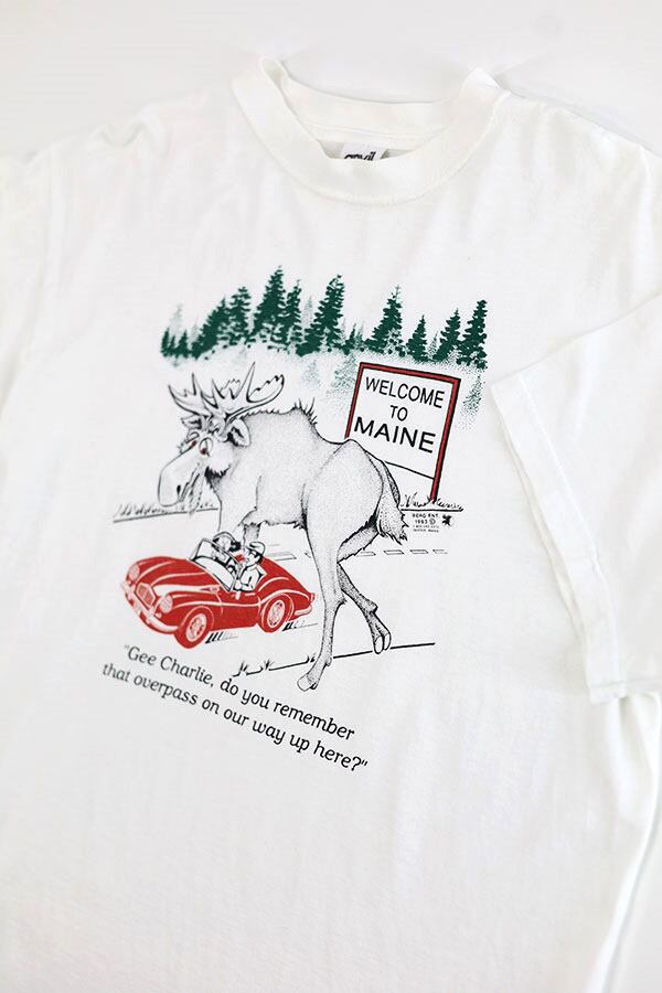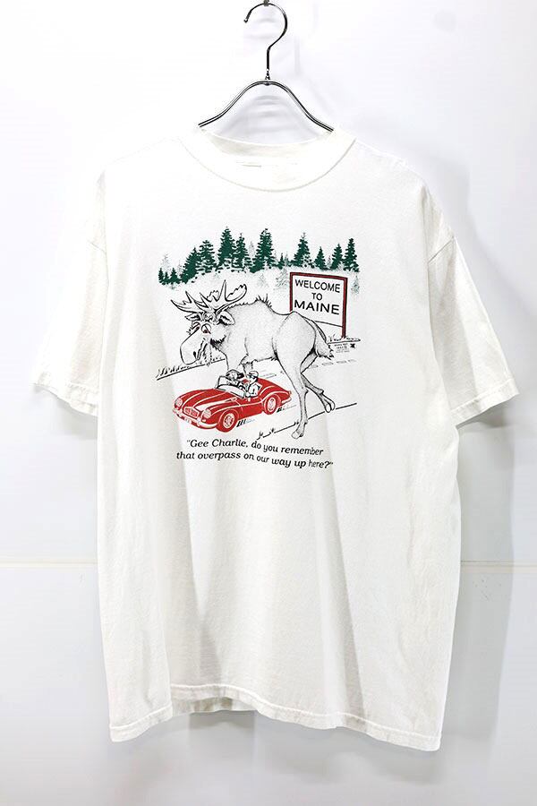 Used 90s MAINE Moose Animal Pop Art Graphic T-Shirt Size L 古着