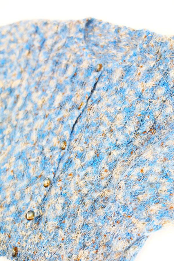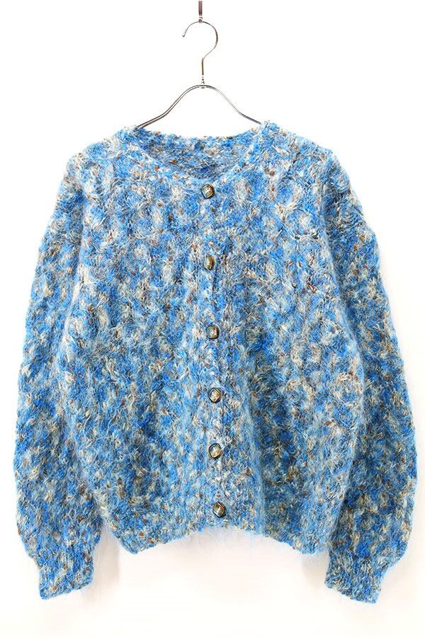 Used Womens 70s-80s Unknown Blue Nep Shaggy Wool Cardigan Size L 相当 古着