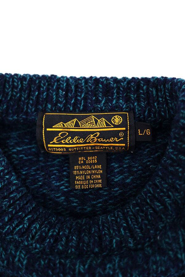 Used 80s-90s Eddie Bauer Green Mosaic Fablic Wool Knit Size L 古着