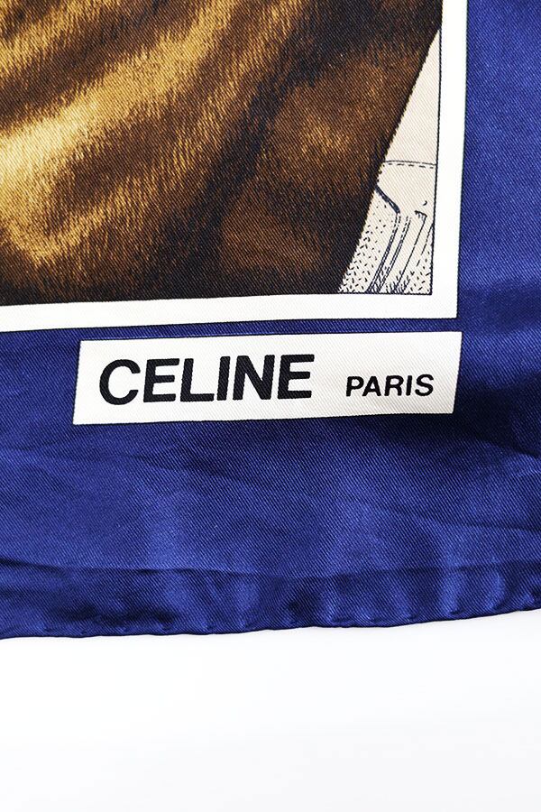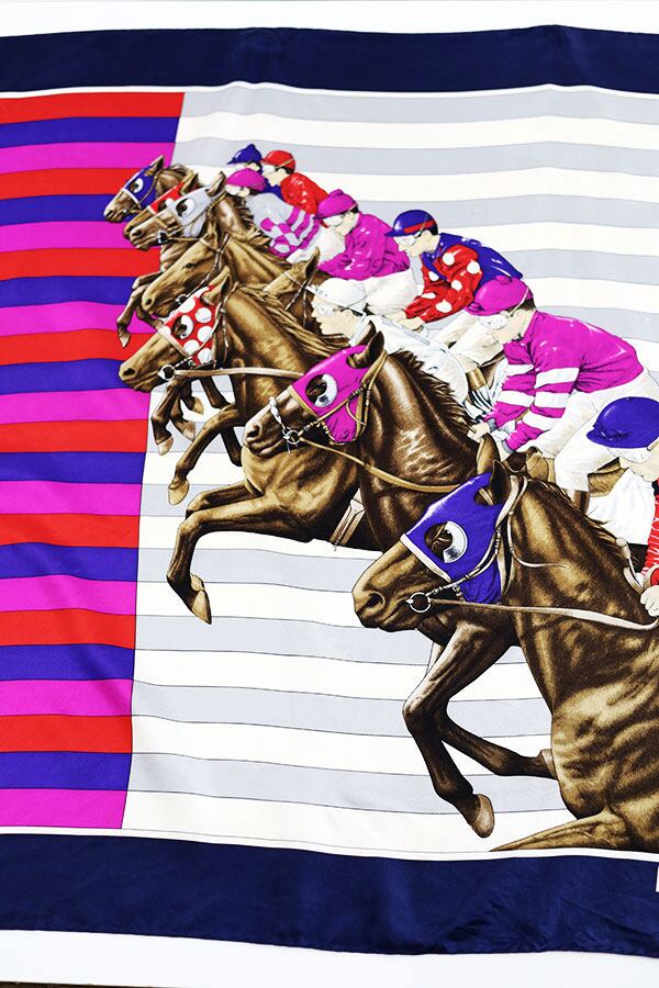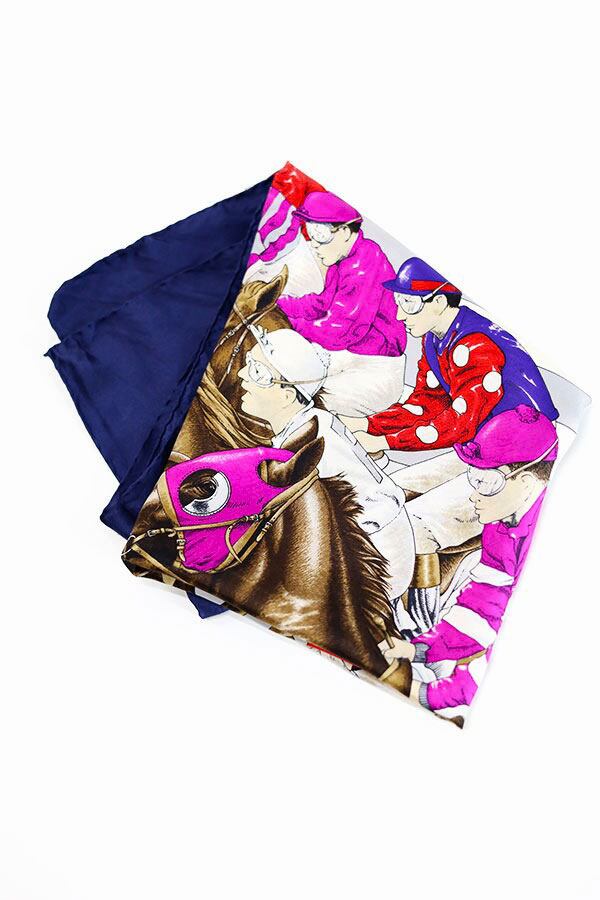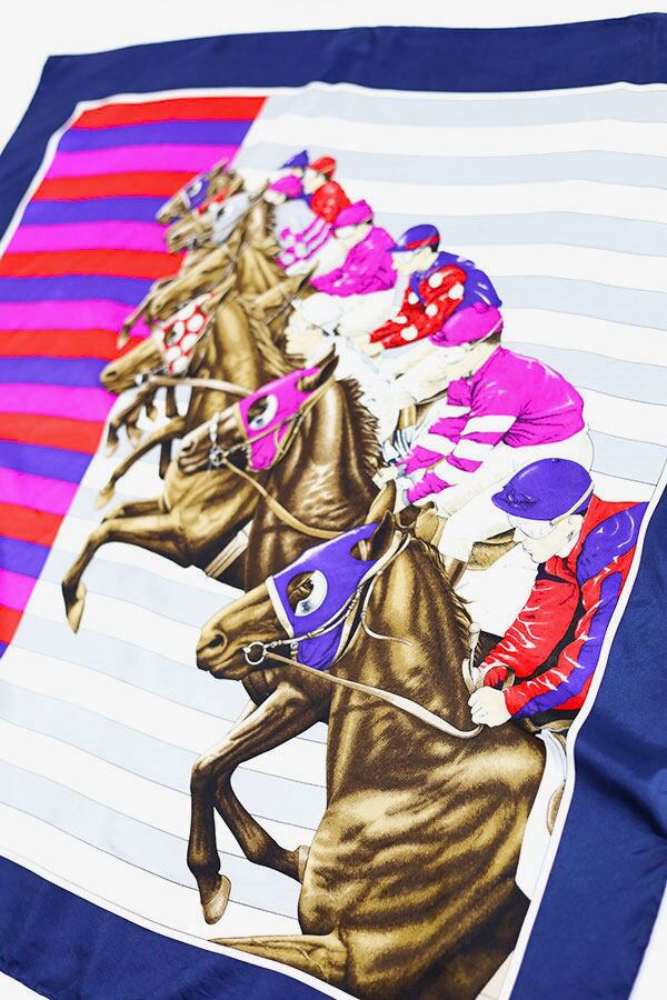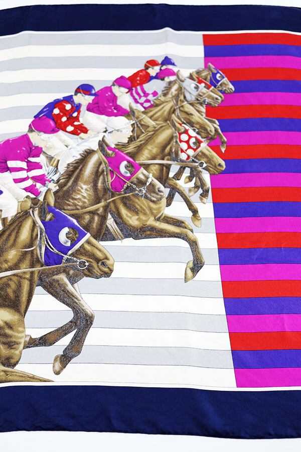 Used 80s-90s CELINE Horse Racing Graphic Large Scarf 古着