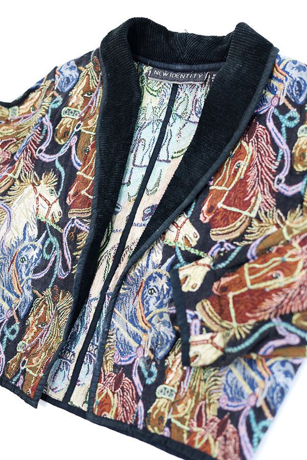 Used Womens 90s Horse Animal Gobelin weave Blouson Jacket Size L 古着