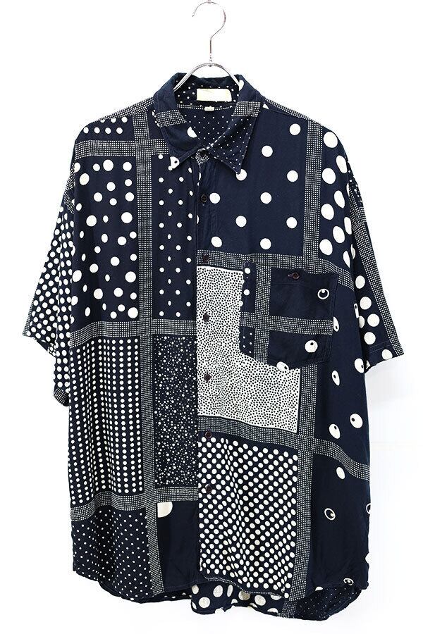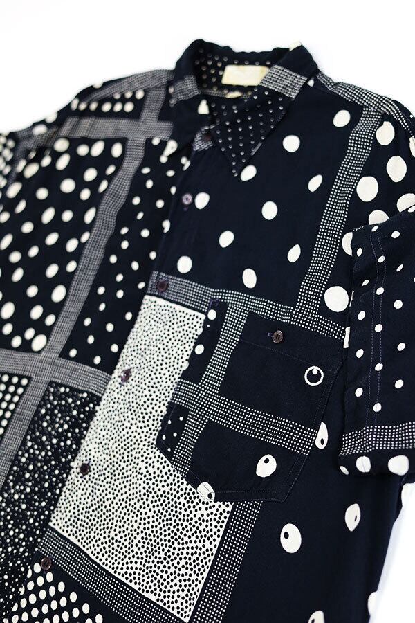 Used 80s-90s Monotone Dot Check Design Rayon S/S Shirt Size XL 相当 古着