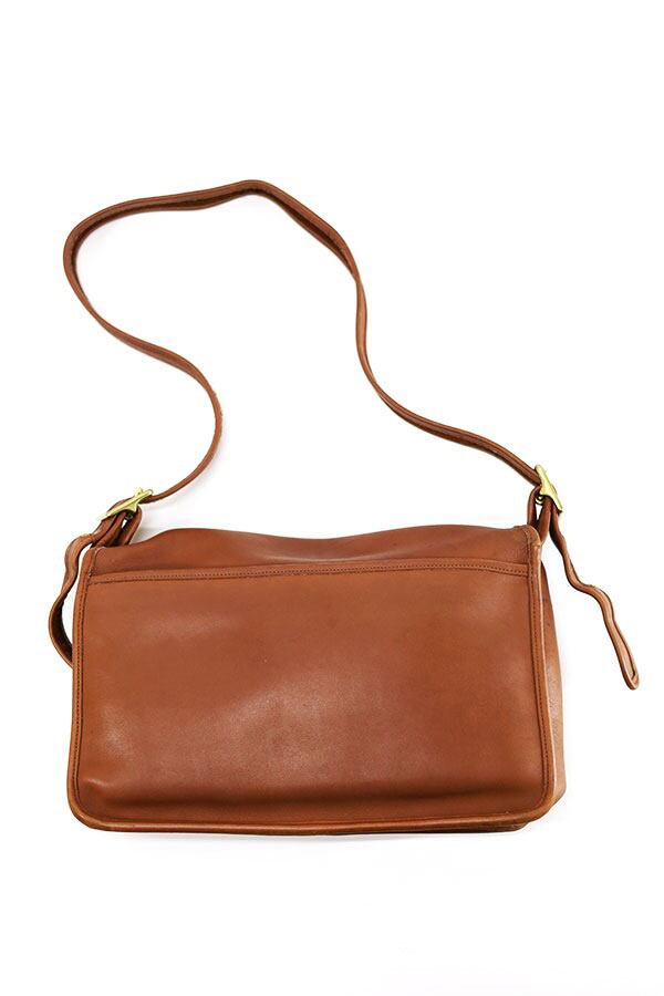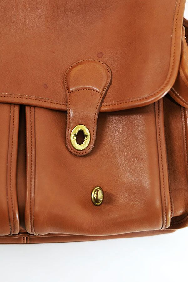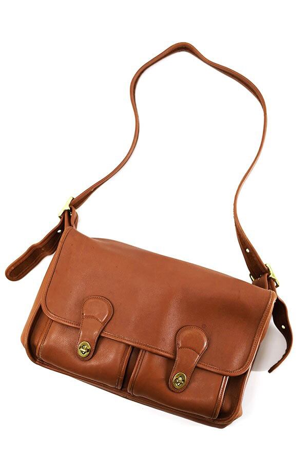 Used 90s USA COACH Camel Brown Double Turn Rock Post Man Type Sholder Bag 古着